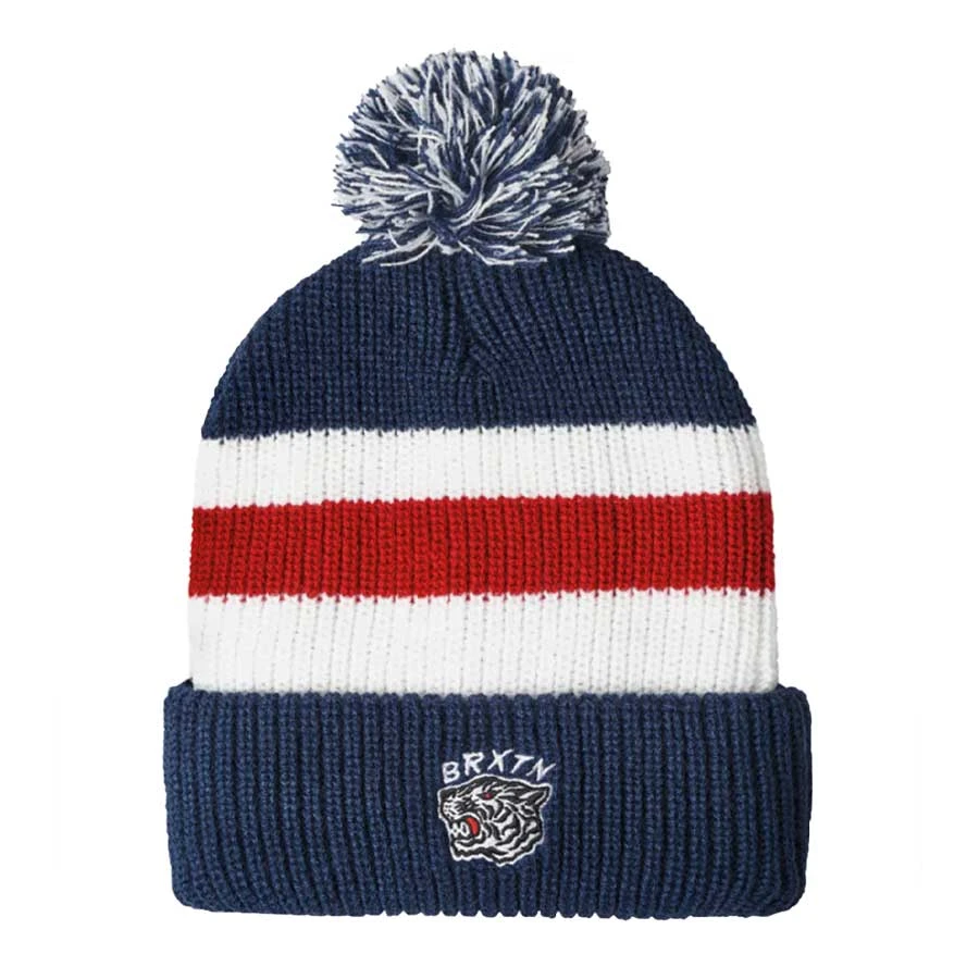 The Kit Pom Beanie is a cozy acrylic beanie in a 2X1 chunky knit. Crisp jacquard stripes contrast the two-tone pom while custom direct embroidery decorates the cuff.