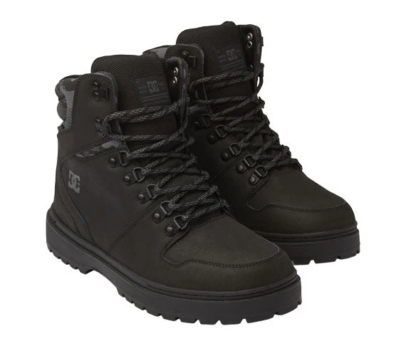 Experience ultimate comfort and durability with our DC Shoes Peary Tr Leather Boots. Featuring heavy-duty leather upper fabric, rubber cupsole construction, a durable tread on the outsole and D-rings and speed lacing hardware closure for secure fit.