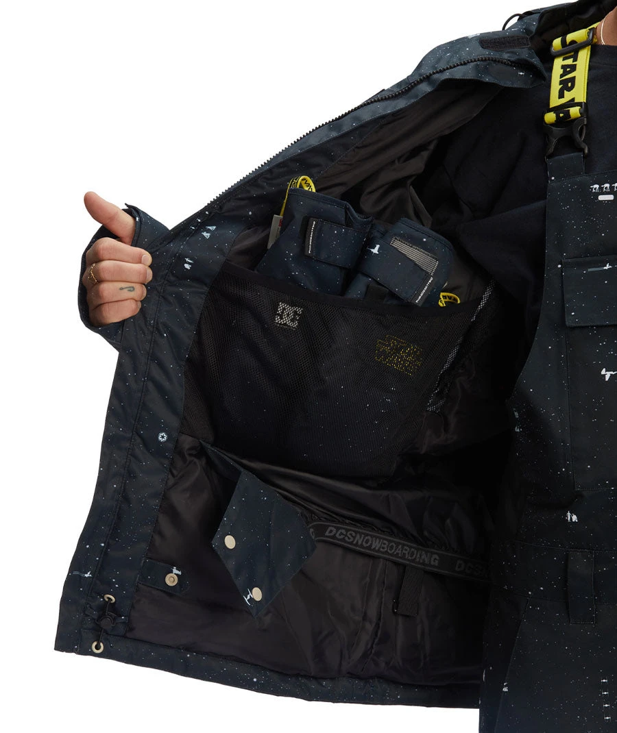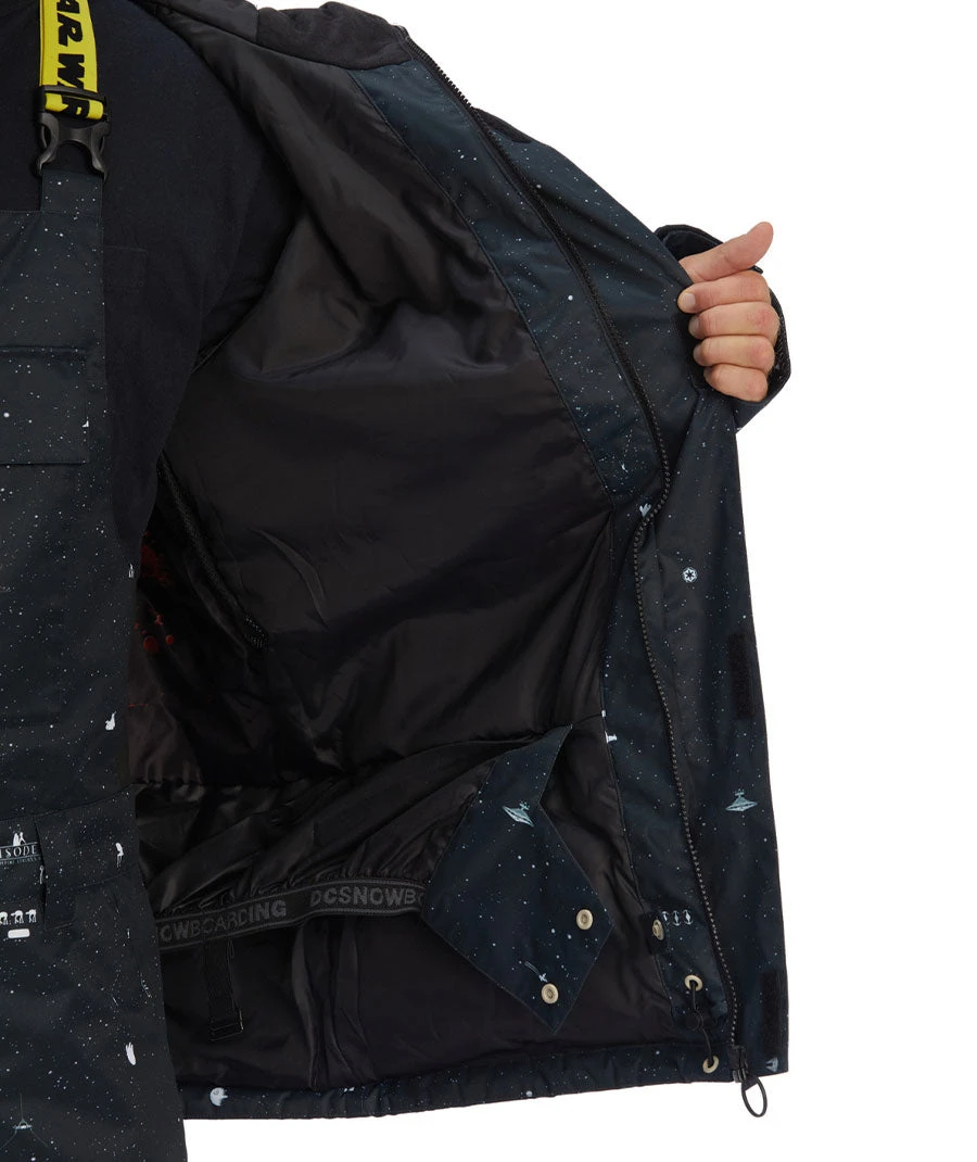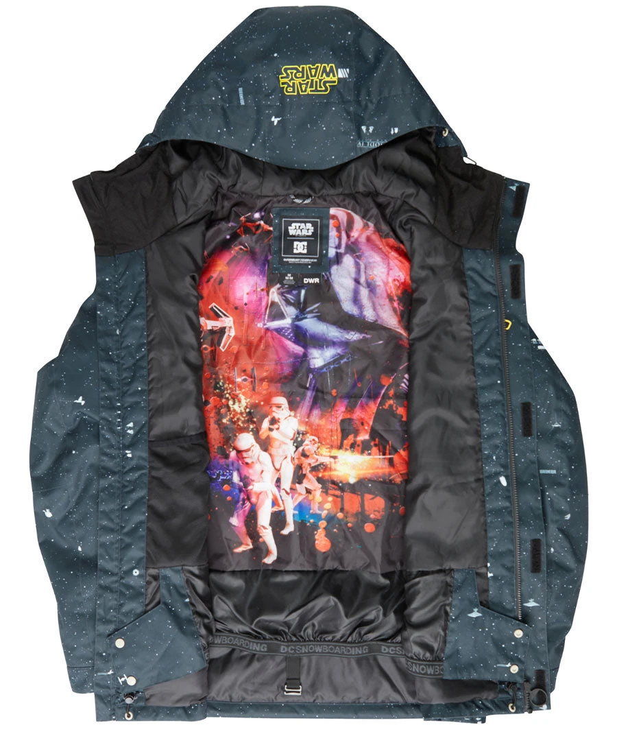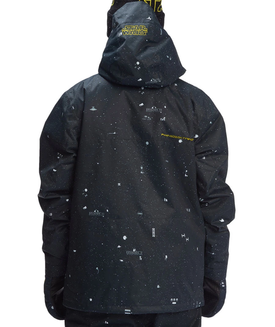 The star wars defy jacket pays homage to the original trilogy with a custom galaxy print that celebrates our favorite characters from the dark side. But this jacket really comes to life when you see the villainous print on the interior lining. Featuring darth and his henchmen, these vintage details ensure that star wars defy will be the most unique jacket on any mountain… in any galaxy.