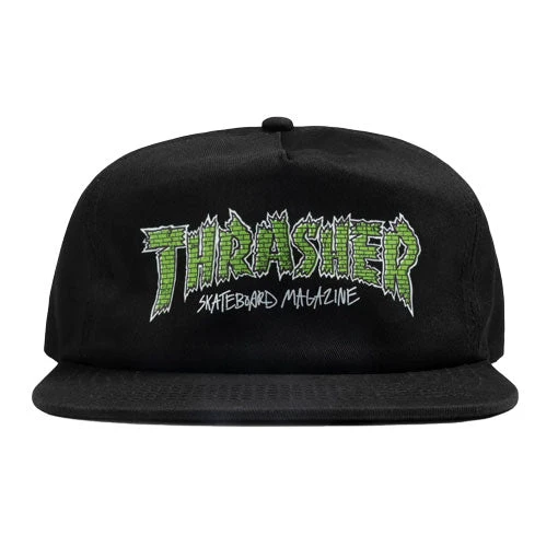 Shallow crown snapback hat woven from cotton. Featuring a sewn-in label and finished with artwork at center.